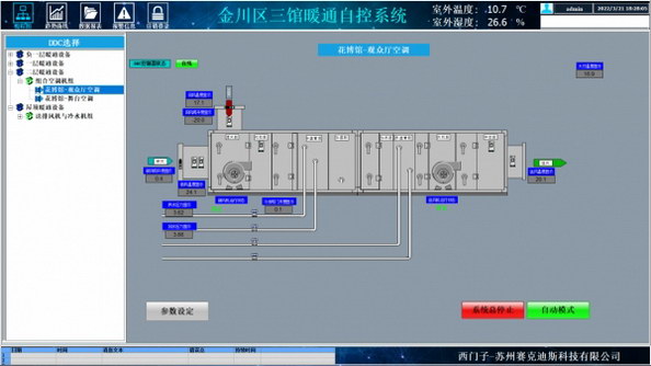 金昌三館暖通空調(diào)項目自控系統(tǒng)是將金川區(qū)圖書館、花博館、檔案館三處館所內(nèi)所包含的風冷熱泵系統(tǒng)、組合式空調(diào)系統(tǒng)、新風系統(tǒng)、送排風系統(tǒng)和排污系統(tǒng)等納入樓宇自動化管理系統(tǒng)進行統(tǒng)一監(jiān)視、控制和管理。直觀簡潔的操作畫面,經(jīng)濟的控制器選型和系統(tǒng)搭配,健全的報警機制,利用 PID 功能精準控制調(diào)節(jié)閥,充分體現(xiàn)了系統(tǒng)的簡單易操作、經(jīng)濟高效、安全、節(jié)能等特點,為場館提供了一個安全、舒適的生活、學習與工作環(huán)境空間。
